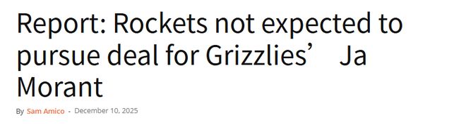 火箭队在今夏获得杜兰特时,已然完成了一笔重磅引援,而且短期内球队似乎并无再度出手的打算。北京时间12月11日,据名记萨姆-阿米克报道,火箭队无意推动一笔涉及灰熊队球星莫兰特的交易。